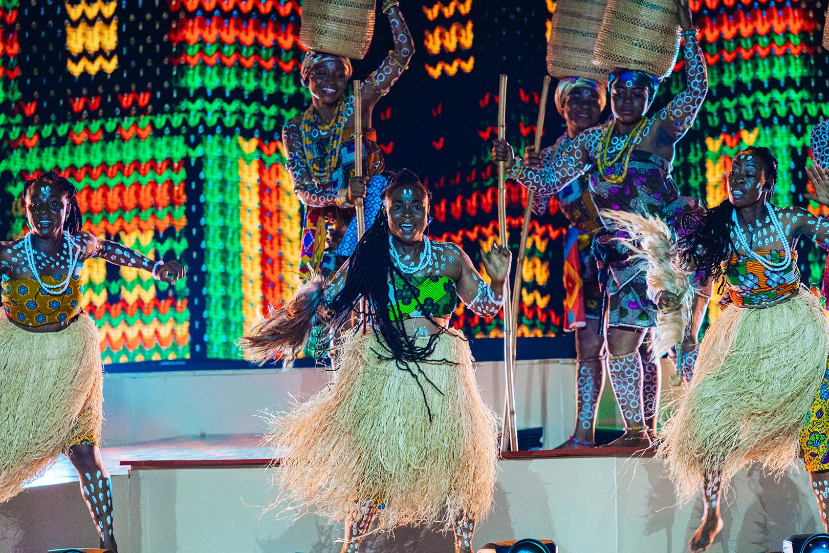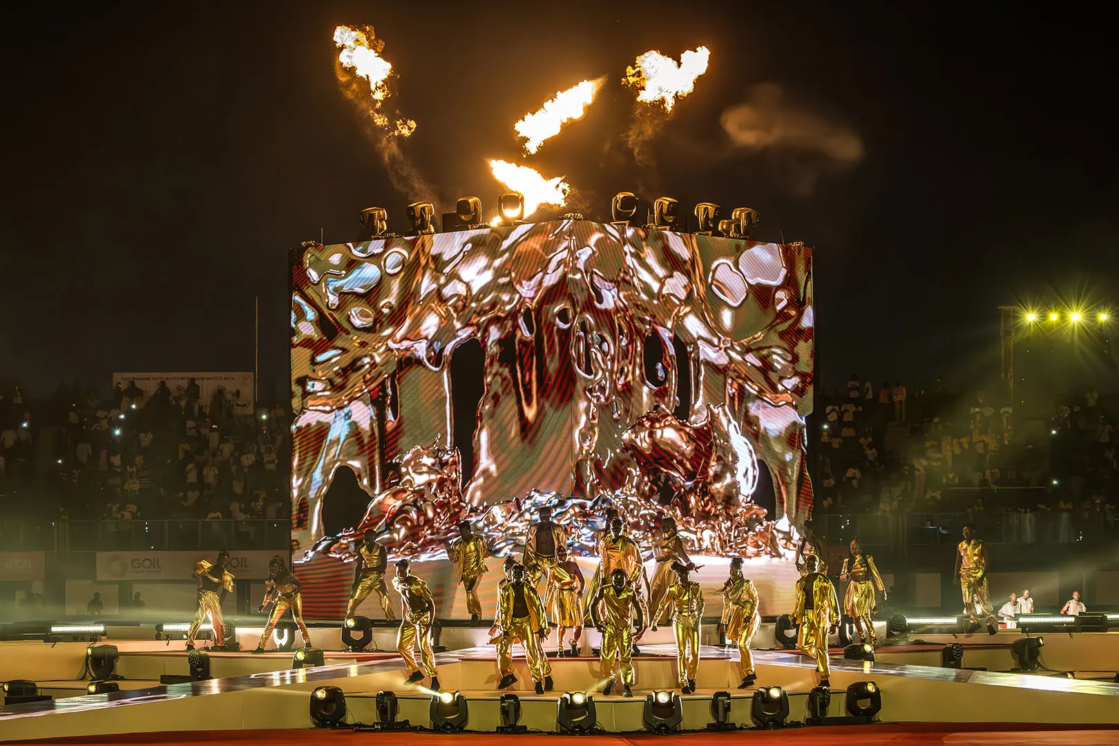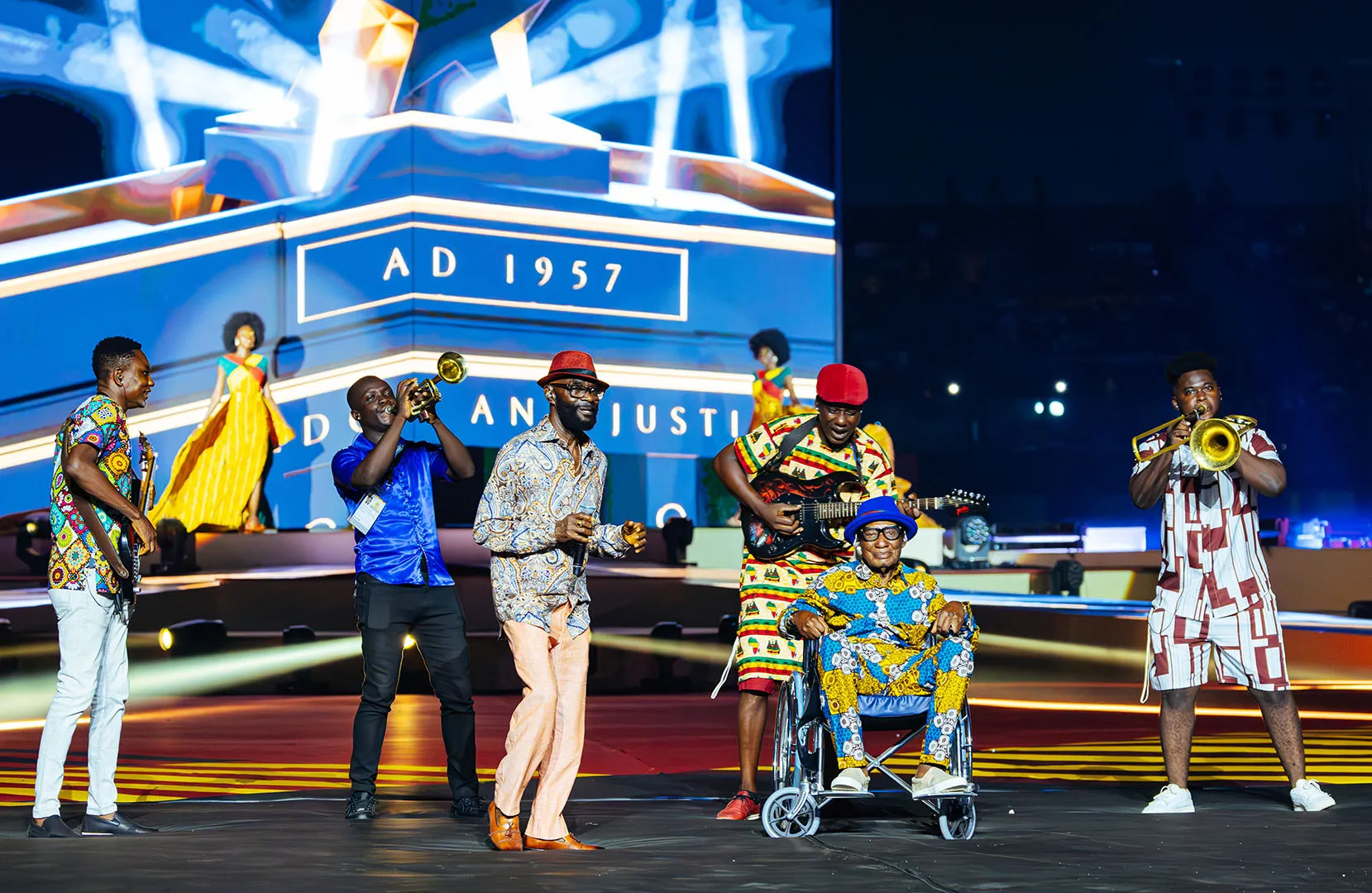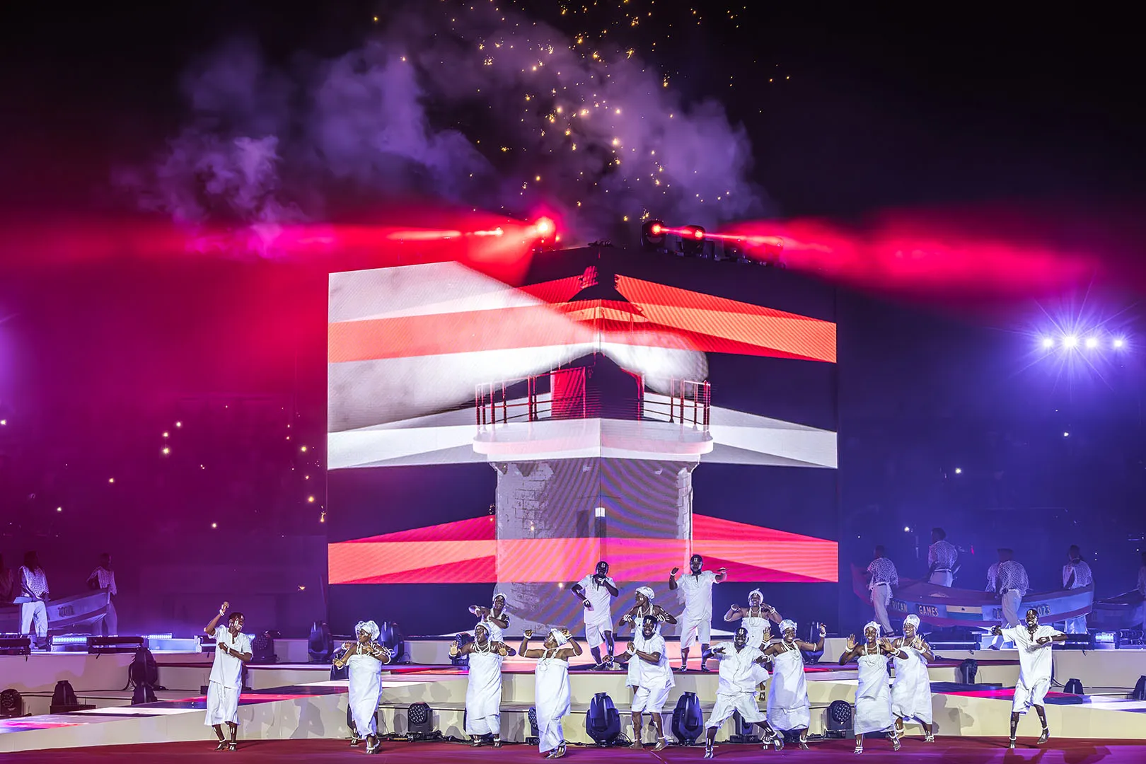 The Opening Ceremony of the African Games in Accra unfolded as a symbolic journey across Ghana’s regions, celebrating the country’s cultural and ethnic diversity with a blend of tradition and modernity. From hand-painted pirogues and real fishermen to 3D anamorphic fauna from Mole Park, each tableau brought Ghana’s landscapes and legends to life — including the iconic Spider God, Anansi. A monumental 360° scenography built around a six-meter LED cube and a luminous catwalk inspired by Kente weaving created an immersive experience for the entire stadium. The ceremony reached its emotional peak with the reunion of Highlife legends Pat Thomas and Ebo Taylor, performing together for the first time in 43 years, a moment linking generations and honoring Ghana’s enduring artistic legacy.