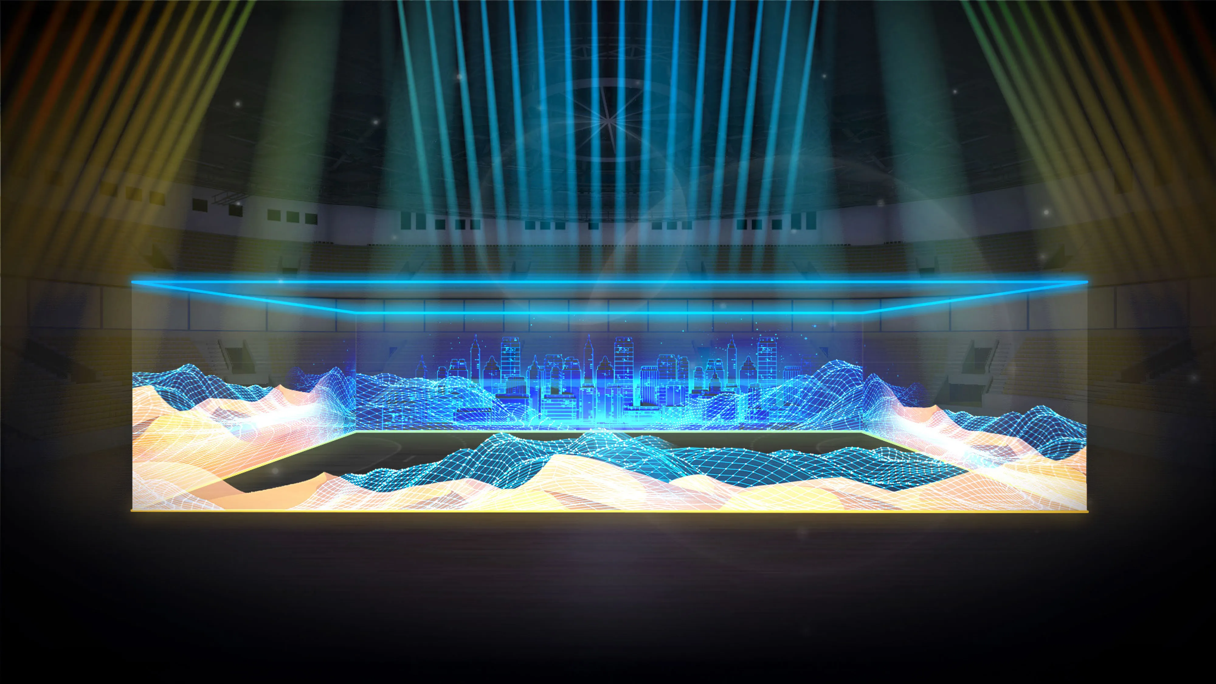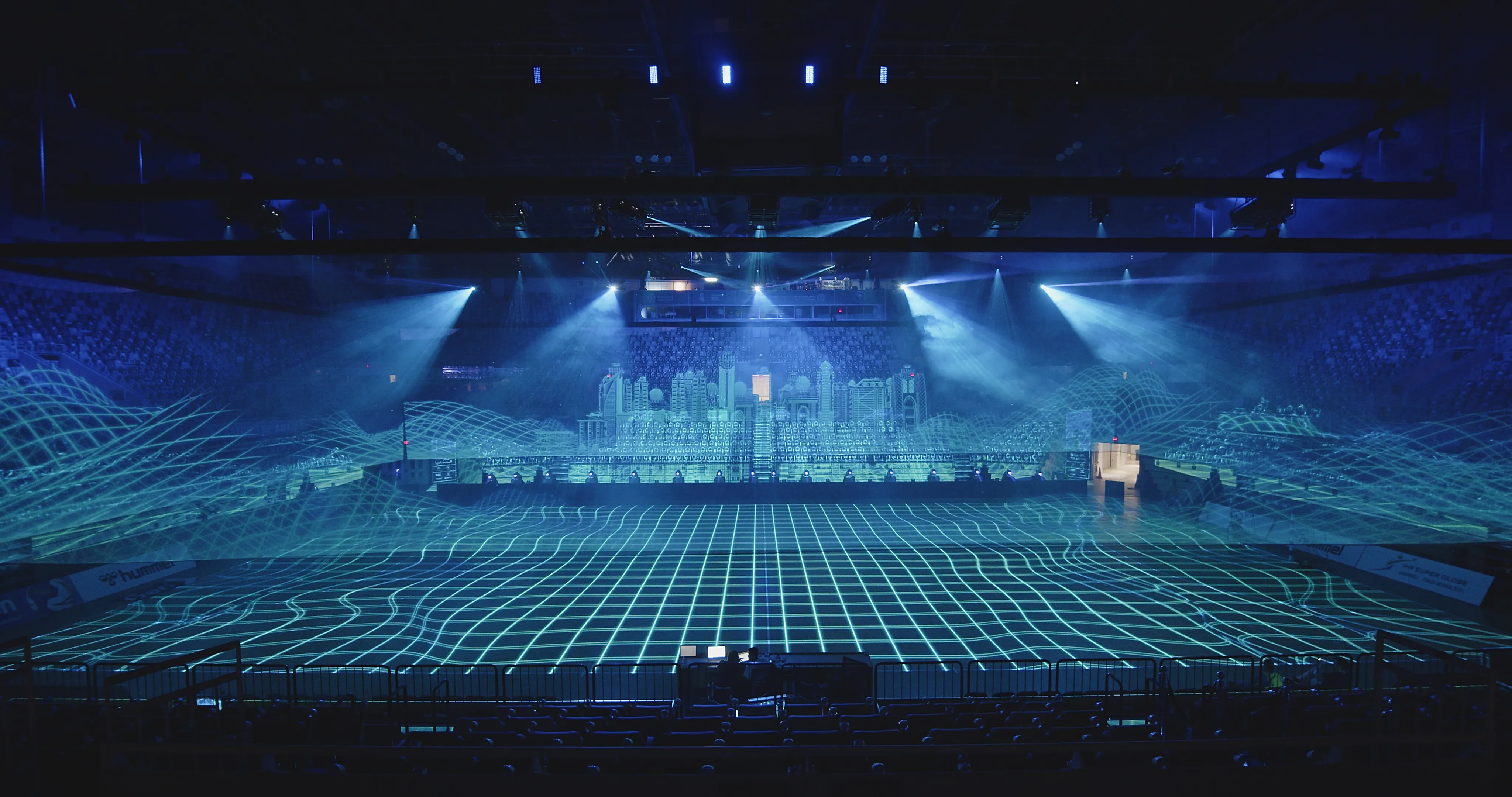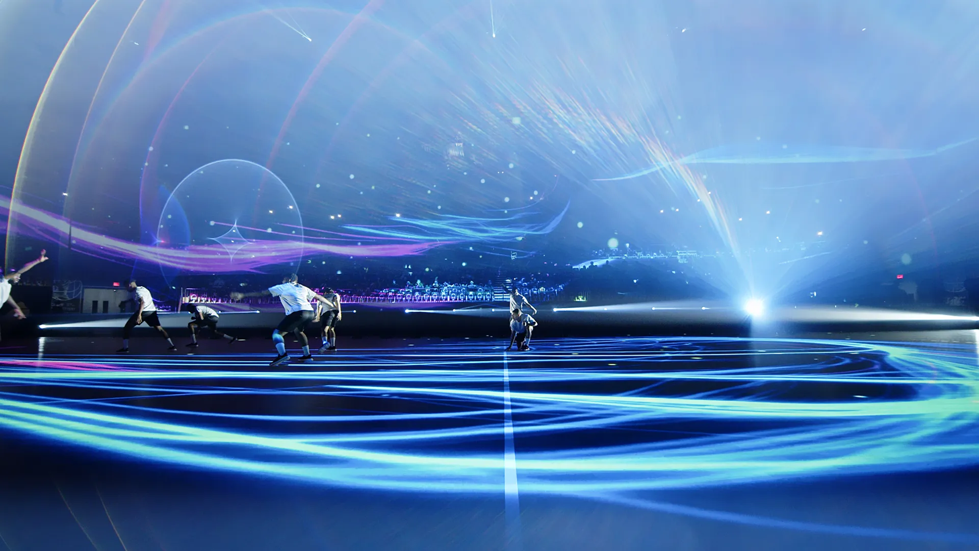 We have thus transformed the ground into a 360° immersive show stage allowing the design of a performance using the height of the volume to create sequences combining artistic performances and impressive holographic visual effects.
