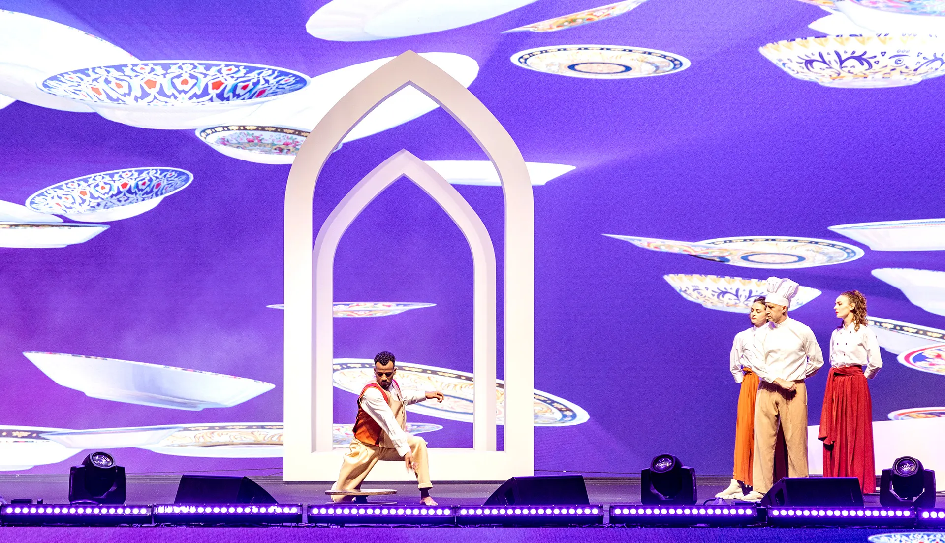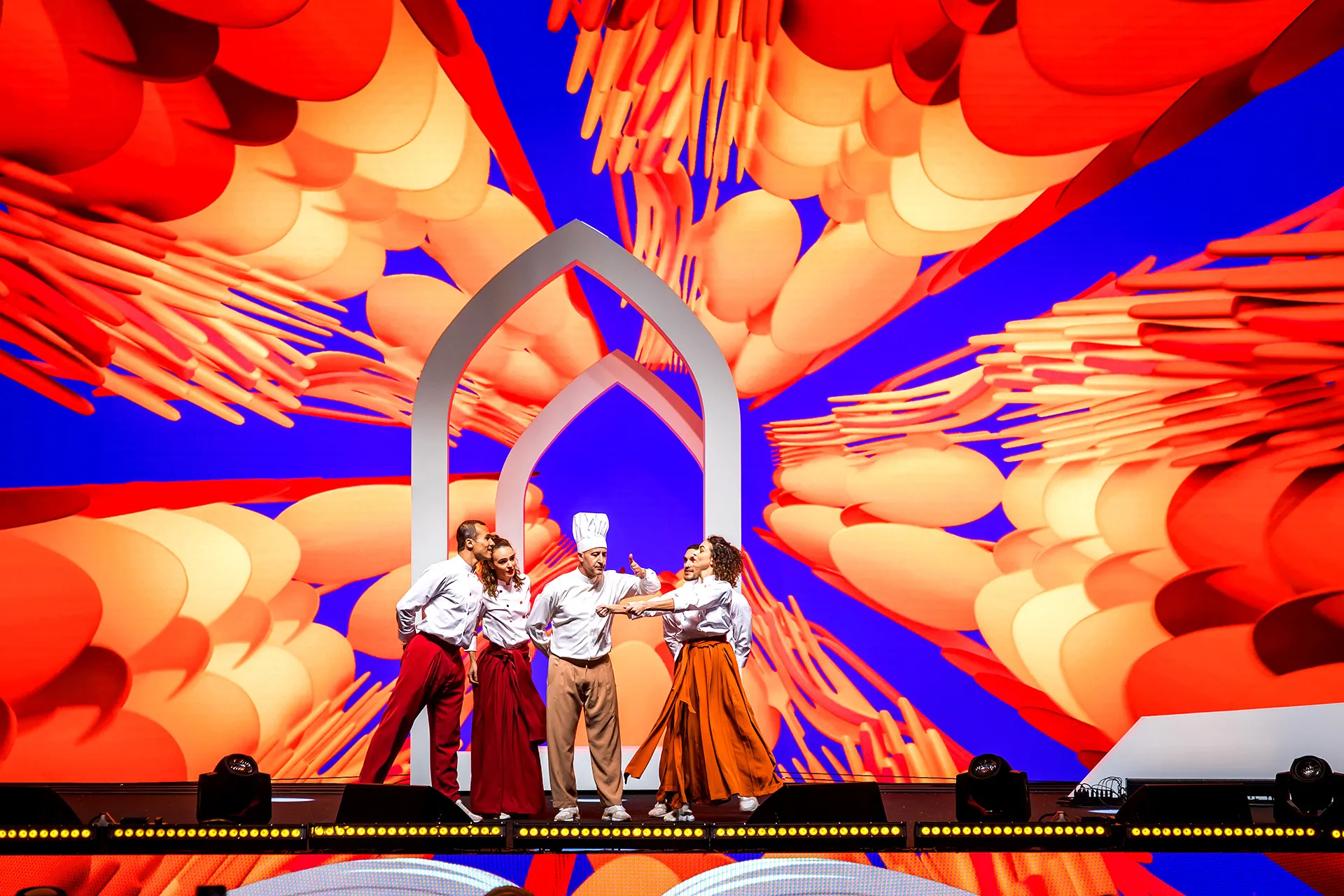 This Opening Ceremony represents LEAP’s first collaboration with the Qatar International Food Festival. Conceived as an immersive live experience, the show brings together live performance and moving scenographic elements to shape a vibrant and evolving stage environment at the Family Zone of Doha Expo 2023, in Al Bidda Park. Opening the festival with an official welcome and concluding with a celebratory fireworks finale, the ceremony sets the stage for QIFF. Inspired by the festival’s identity, it unfolds through choreography, decor, and visual moments, celebrating flavours, cultures, and culinary creativity in an immersive and expressive way.